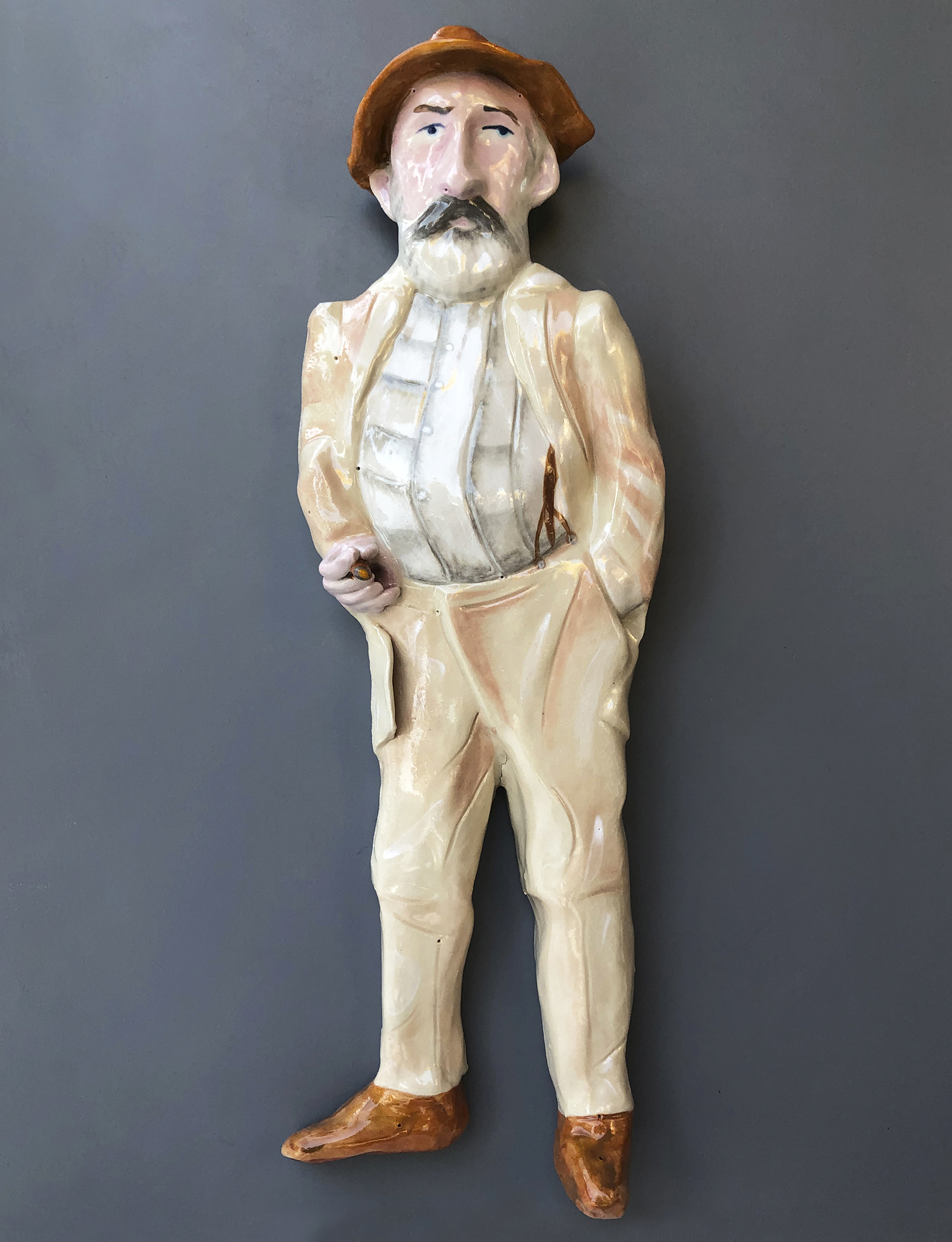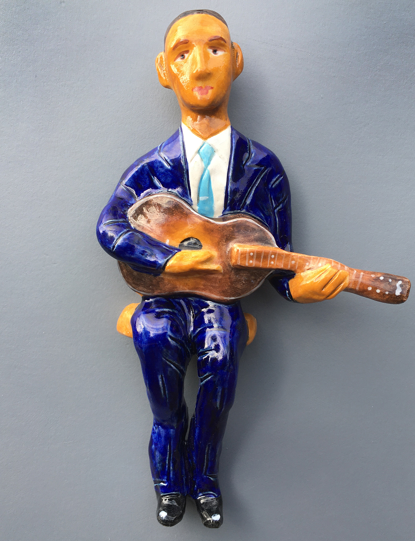 Blues Boy. Handbuilt glazed ceramic wall art 2020